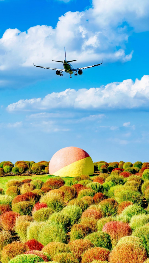 如果說粉黛是“溫柔少女”,那地膚草就是花田里的“俏皮精靈”。飛機下由地膚草組成的“彩色地毯”正從盛夏的翠綠,慢慢染上初秋的嫩黃、橙紅,隨手一拍都是治愈系萌照。